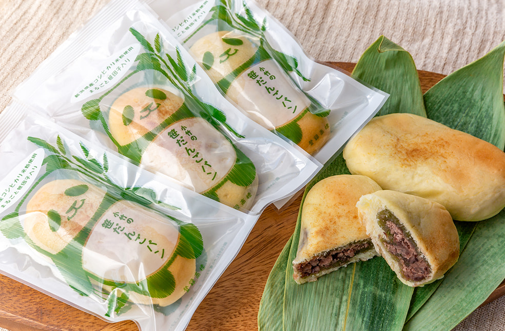 笹団子を薄皮の米粉パンで包んだ新食感のパン。
